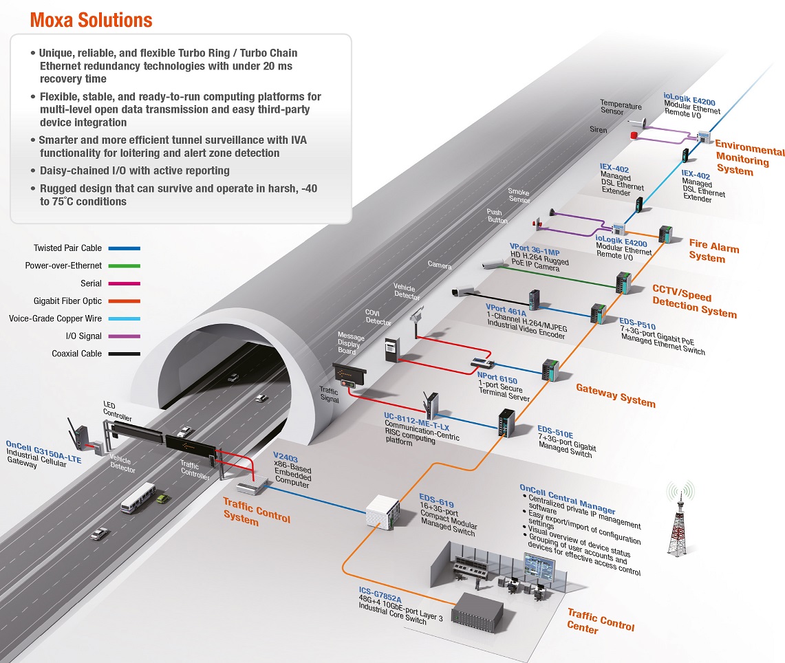 Tunnels vormen sinds jaar en dag de bottlenecks in het verkeer. Intelligente controlesystemen kunnen dit probleemvan de baan ruimen en daarbovenop extra veiligheid garanderen. Alleen moeten dit geïntegreerde en 100% betrouwbare oplossingen zijn die snel anomalieën detecteren én een bediening vanop afstand toelaten. Zoals de systemen van Moxa die in België door Technolec uit Temse worden gecommercialiseerd en ondersteund.